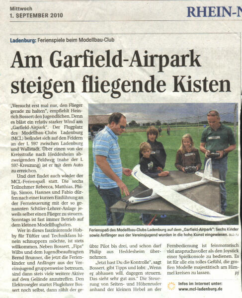 Im Rahmen des Ferienprogramms der Stadt Ladenburg hatte der MCL Kinder und Jugendliche im Alter ab 12 Jahren zum Fliegen von Modellflugzeugen auf den Modellflugplatz eingeladen.