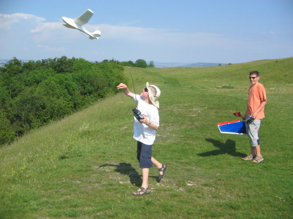 Unsere Jugendlichen störte das nicht im geringsten. Mit den leichten Modellen (HLGs, FlexyFlys) wurde den ganzen Nachmittag geflogen. Und manchmal schafften sie es, in die reichlich vorhandene Thermik zu gelangen und schöne und lange Flüge zu machen. Es hat großes Vergnügen bereitet zuzusehen, mit wie viel Gefühl die Jungs ihre Flieger an der Hangkante bewegen!