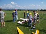 Das Treffen fand am Samstag, dem 25.August bei strahlendem Wetter statt, so dass die Teilnehmer auch gleich mit den bereitstehenden Modellflugzeugen fliegen konnten.